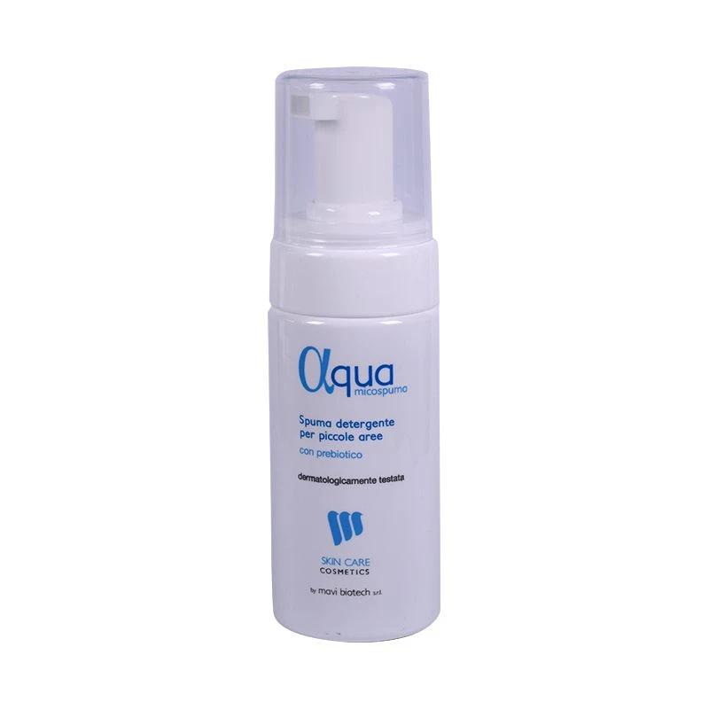 Aqua Micospuma è una delicata spuma detergente che, grazie alla presenza di tea tree oil associato ad un prebiotico di origine vegetale, aiuta a normalizzare la flora microbica naturalmente presente sulla pelle, lasciando un velo protettivo che la mantiene idratata.